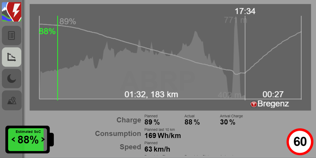 Hatte mir vor der Fahrt in der kostenlosen Variante von ABRP die Route mit meiner Fahrgeschwindigkeit berechnen lassen und hab dann das Navi aus dem Kia genutzt und lediglich während der Fahrt die Stops aus der Liste ausgewählt hat top geklappt und ich kam mit wesentlich mehr Reichweite an, als berechnet wurde! Gut das lag wahrscheinlich an dem Rückenwind vom Sturm am Freitag😅 Als der Wind sich gewendet hat. War vMax bei 171km/h da ging mehr einfach nicht bei dem krassen Gegenwind ab Magdeburg und der Verbrauch war bei 150km/h bei 45kwh 🙃😂