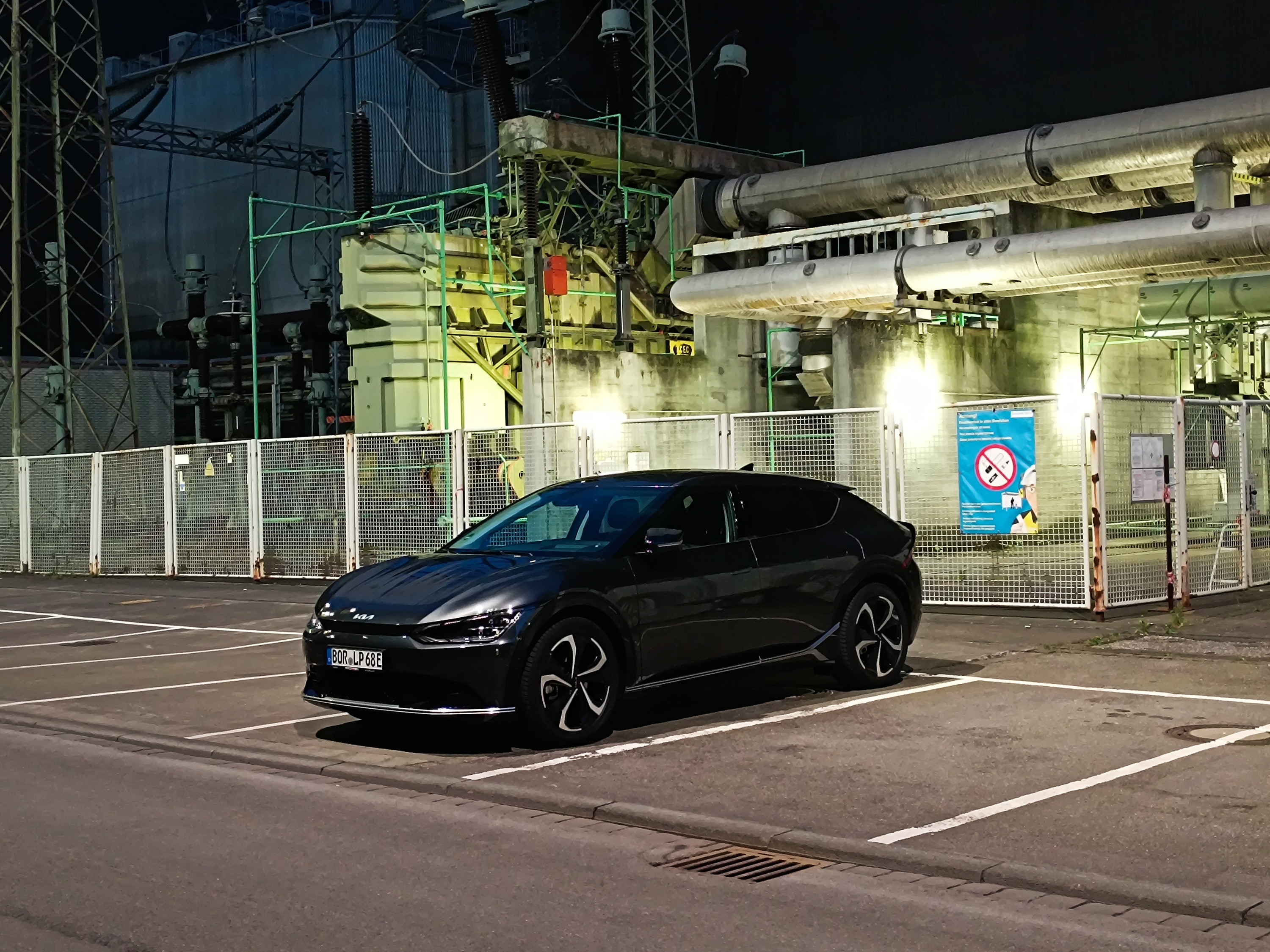 Wollte diesen wunderschönen Anblick mit euch teilen, hier mal mein EV6 vor einem der Maschinen Trafos bei mir in der Arbeit.